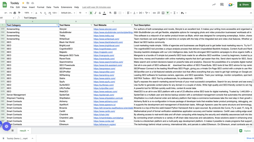 Hey. I'm Mike. I'm a digital tools junkie. I've used and saved hundreds of tools over the years. Things started getting unwieldy and disorganized though. To solve this problem, I've spent ~20 hours to date creating a Google Sheet listing about 3,000 tools that you can search or filter by category, name, website, and description. I save the link to the Google Sheet in my browser and click on it whenever I need to find a tool to help me do something. Much more organized and I discovered a lot of really cool tools over time.